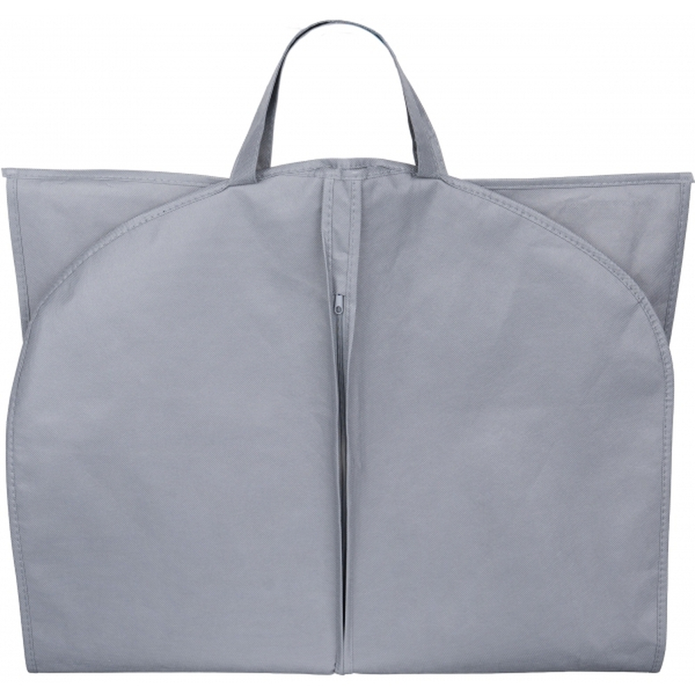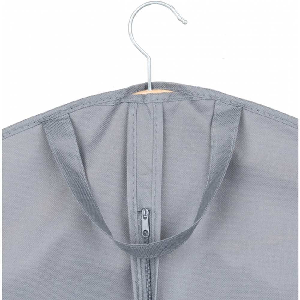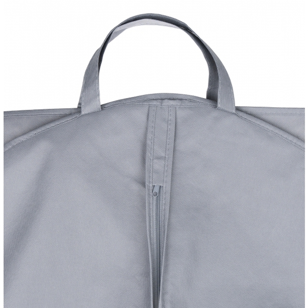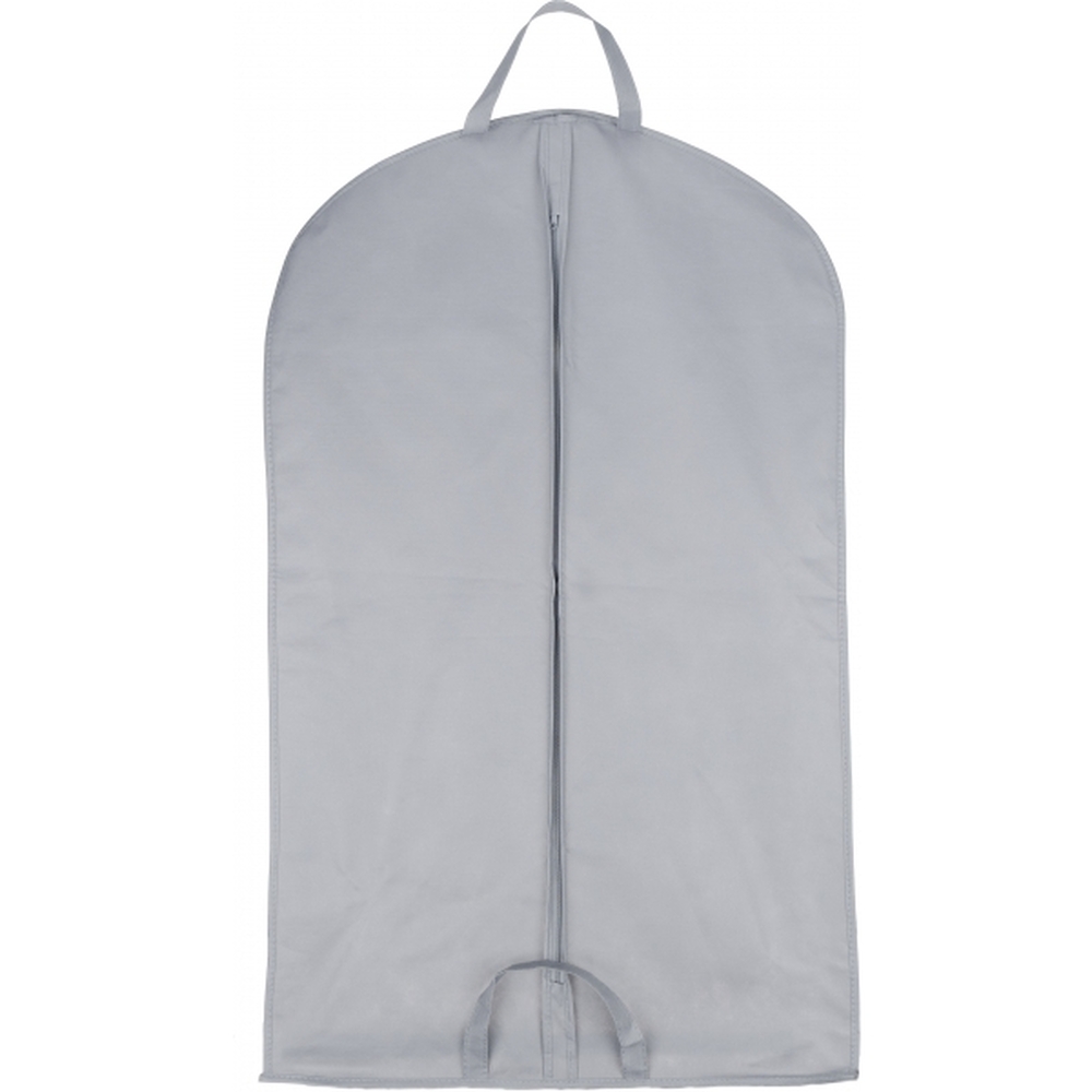 Duży pokrowiec na ubranie, wykonany z materiału non-woven, zapinany na zamek, wyposażony w uchwyt do przenoszenia i otwór u góry na wieszak.