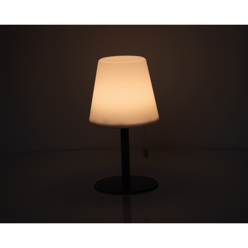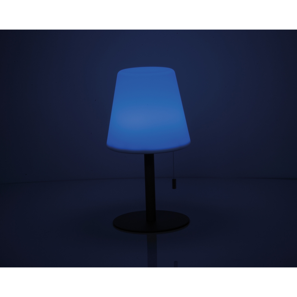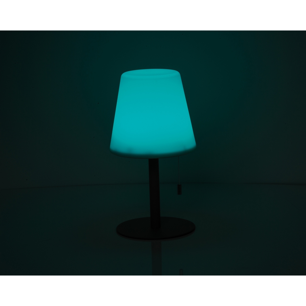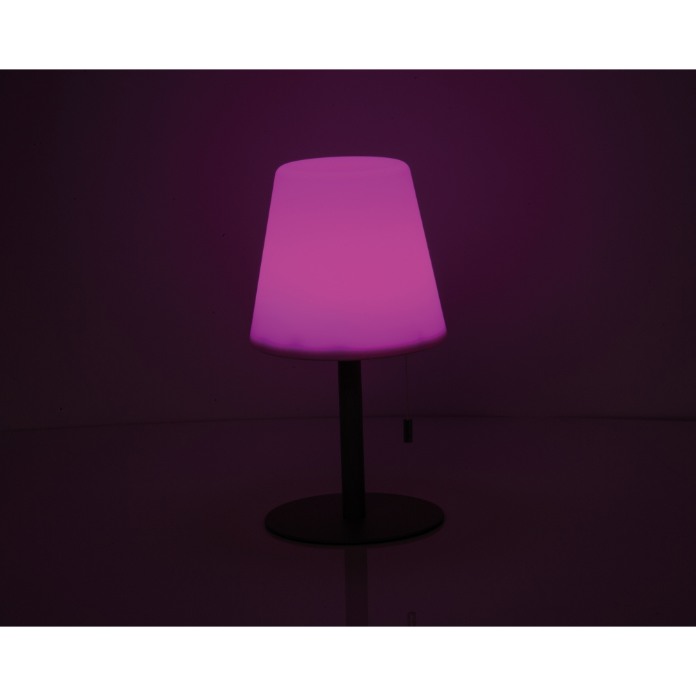 Lampka z funkcją zmiany koloru i nowoczesnym designem (Ø 16,5 × 30 cm), wyposażona w akumulatory 3,7 V o pojemności 2 × 1 200 mAh, zapewniające czas pracy od 8 do 10 godzin. Idealna do ogrodu, na taras lub balkon, tworzy przytulną atmosferę na świeżym powietrzu dzięki różnorodnym kolorom światła.